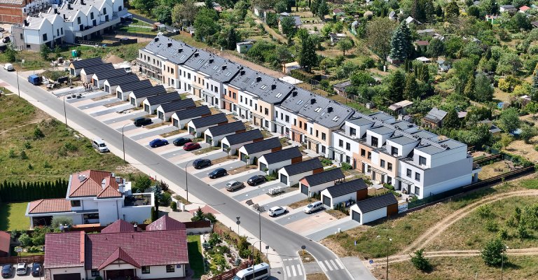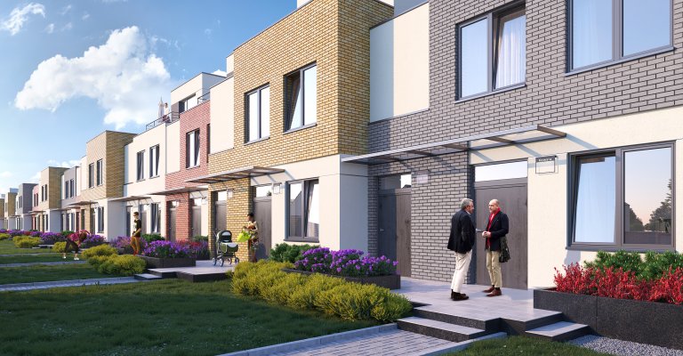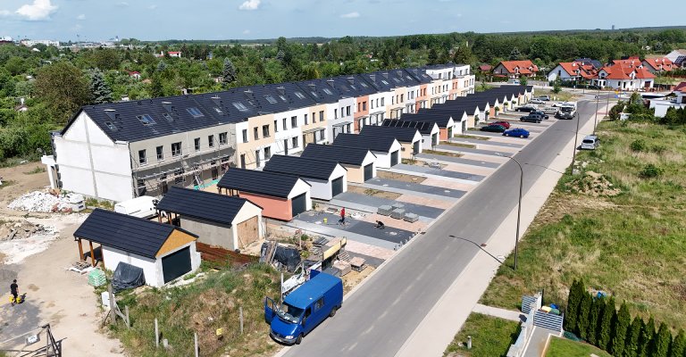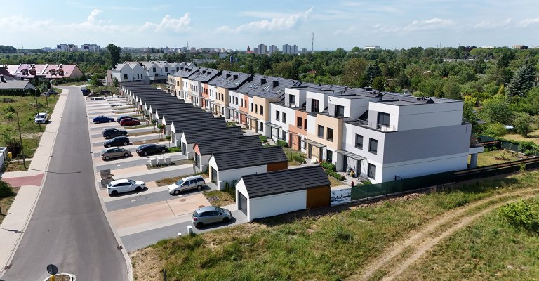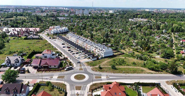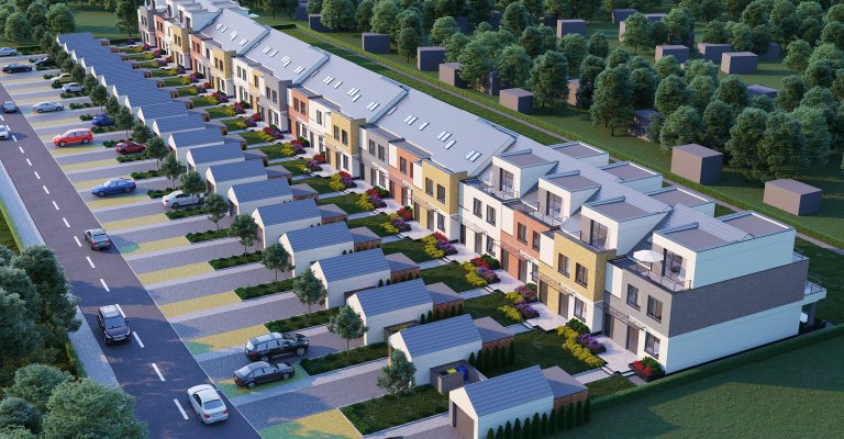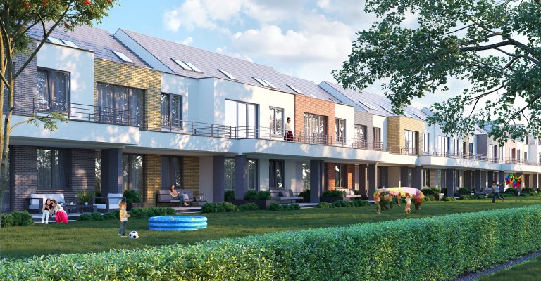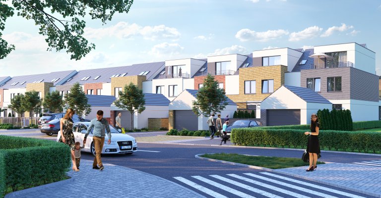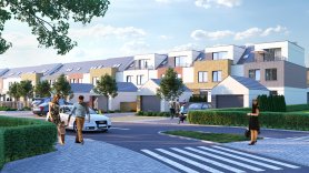Osiedle przy ul. Władysława Komara w Lubinie to szeregowy układ 20 domów jednorodzinnych dwu-lokalowych naturalnie komponujących się z charakterem i klimatem osiedli budynków w niskiej zabudowie szeregowej.